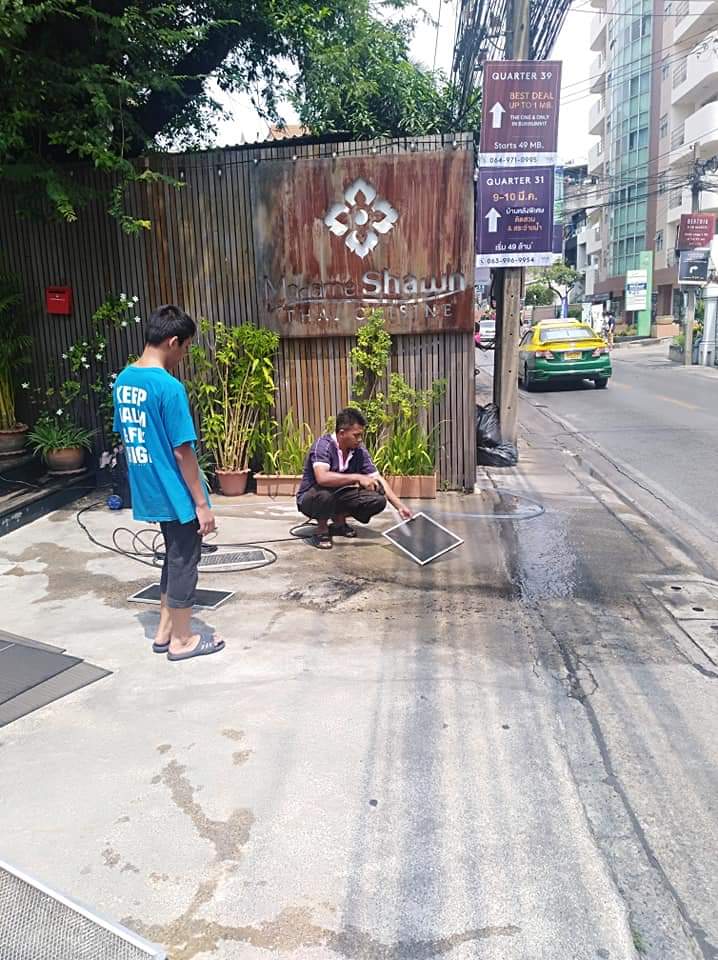 ใช้ปั้มน้ำแรงดันสูงฉีดอัดล้างท่อน้ำทิ้ง และชิ้นส่วนต่างๆ อย่างละเอียด