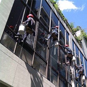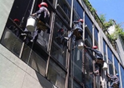 ทำความสะอาดกระจกด้วยทีมงาน สไปรเดอร์แมน โรยตัวลงมาจากที่สูง