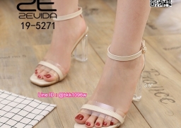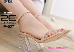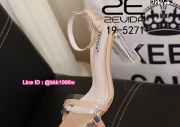 รองเท้าส้นแก้ว สูง 3.5 นิ้ว วัสดุPU คาดหน้าอคิลิคนิ่ม รัอข้อตะขอเกียว ใส่ง่าย
