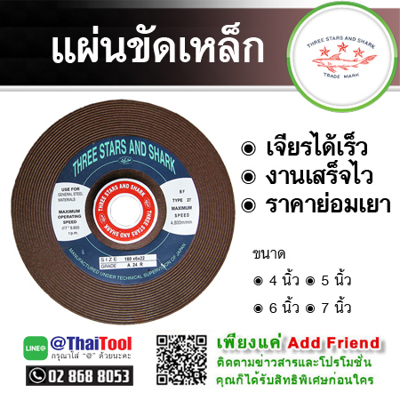 ตุ๊กตา วิษณุราชันต์แผ่นขัดเหล็ก ฉลาม 3 ดาว เหมาะสำหรับงานขัด งานเจียร เจียรชิ้นงานได้รวดเร็วทำให้งานเสร็จไว ชิ้นงานเรียบเนียน สวยงาม สินค้าคุณภาพปานกลาง ราคาย่อมเยา ขนาดบรรจุ 25 แผ่น / กล่อง