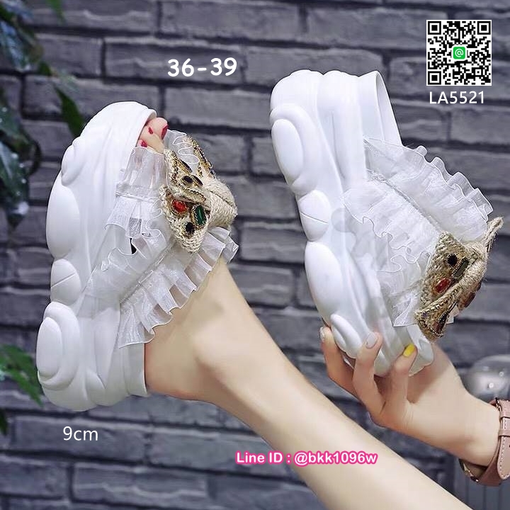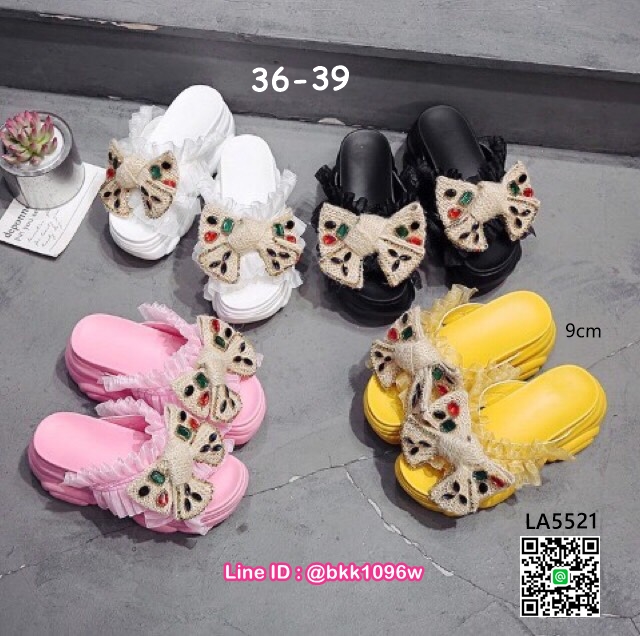 • รองเท้าส้นขนมปังพื้นนุ่ม พื้นPU สูง 9cm. สายหนังPU ไขว์เก็บเท้า แต่งระบายผ้าซีฟอง เสริมโบว์ ติดคริสตัล หลากสี น่ารักสดใส cute girls ไม่ควรพลาดจ้า