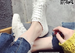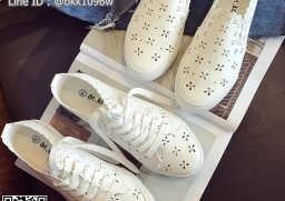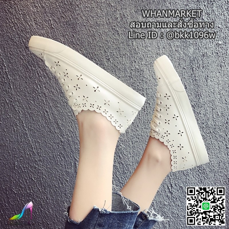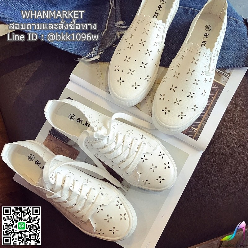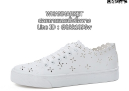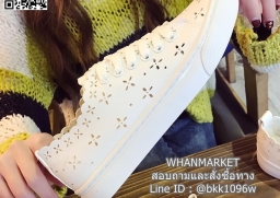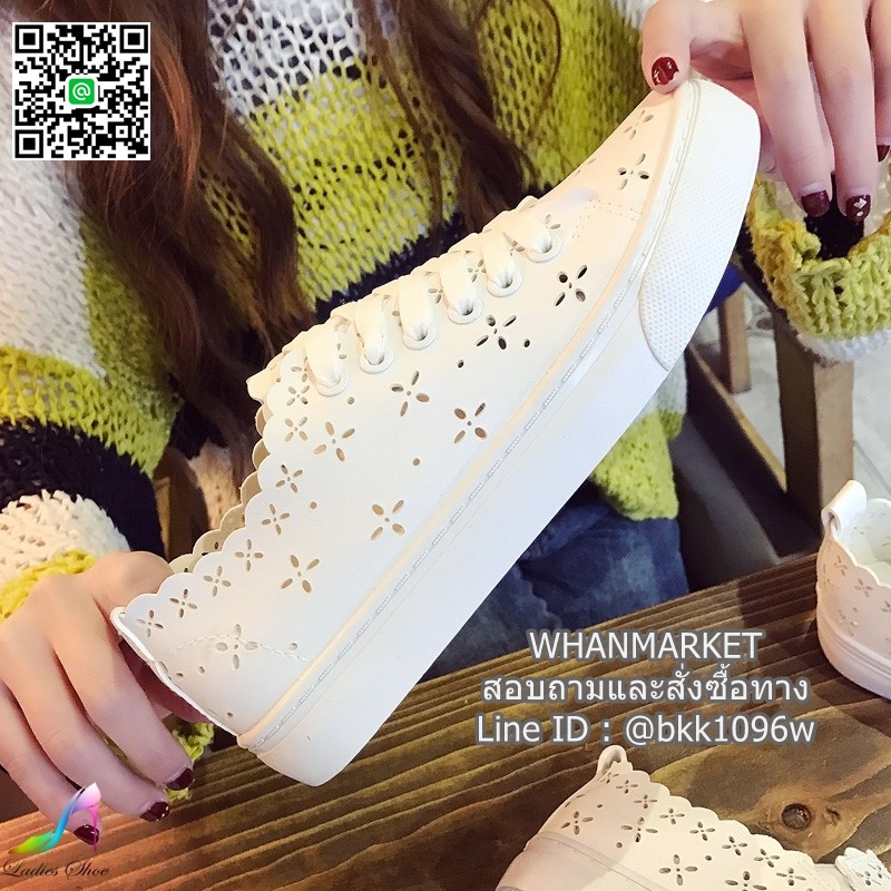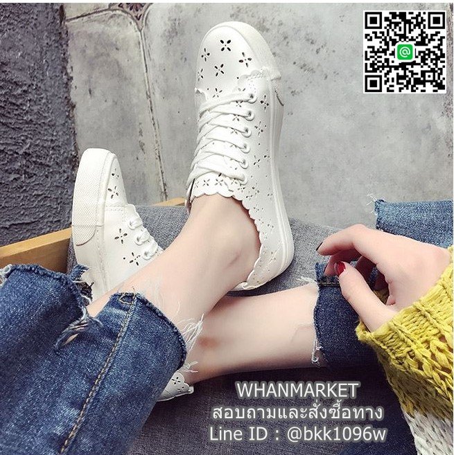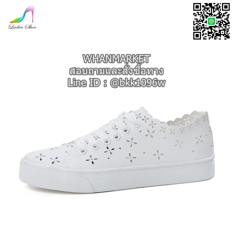 WhanMarketรองเท้าผ้าใบแฟชั่นแบบผูกเชือก วัสดุหนังPu ฉลุลายดอกไม้น่ารัก พื้นยางกันลื่น แบบสวยใส่สบายกระชับไม่อับเท้า