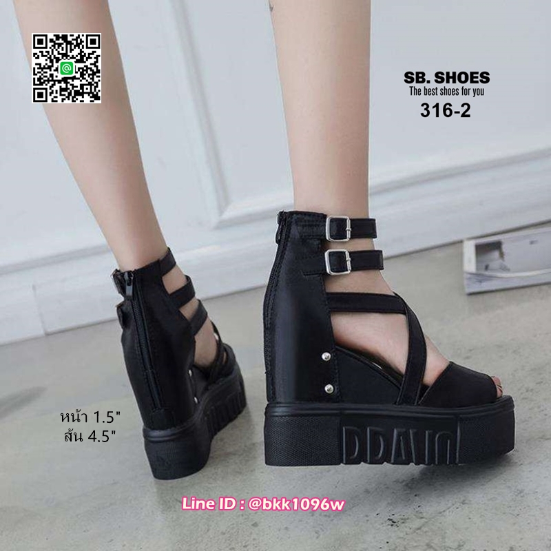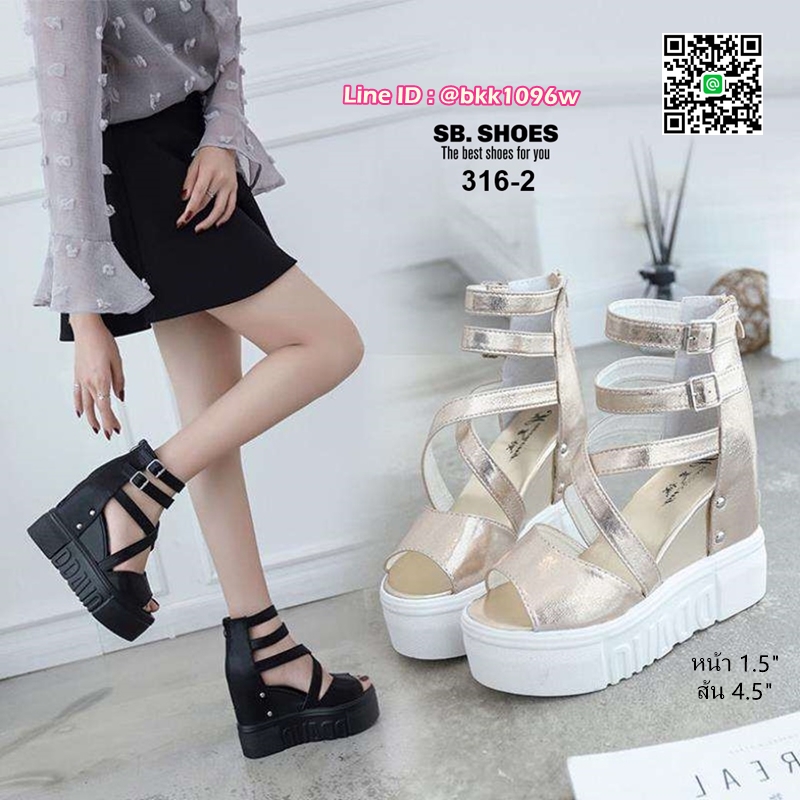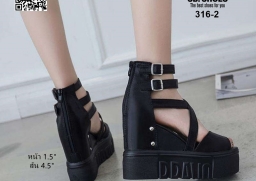 รองเท้าส้นเตารีด สูง4.5นิ้ว วัสดุหนังPUคุณภาพดี แบบสวมรัดข้อ มีซิปหลัง