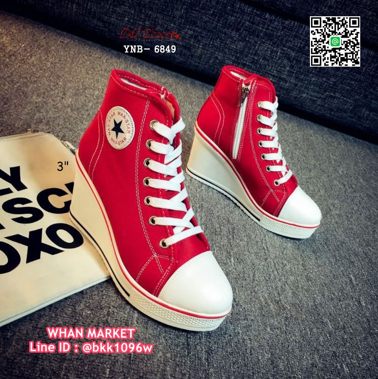 • รองเท้าผ้าใบหุ้มข้อ เสริมส้น 3 นิ้ว วัสดุผ้าแคนวาส ส้นPU มีซิปข้างใส่ง่าย ทรงสวย รีบจับจองกันนะคะสาวๆ