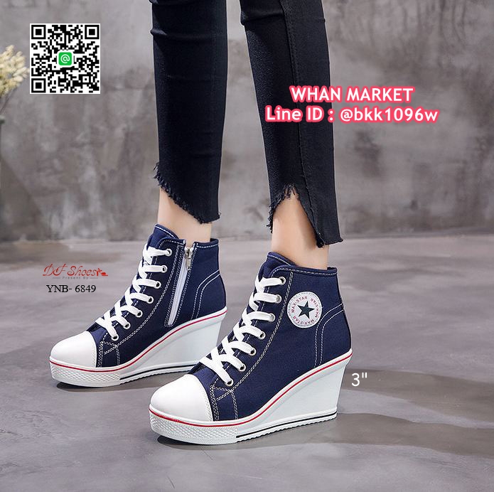 • รองเท้าผ้าใบหุ้มข้อ เสริมส้น 3 นิ้ว วัสดุผ้าแคนวาส ส้นPU มีซิปข้างใส่ง่าย ทรงสวย รีบจับจองกันนะคะสาวๆ