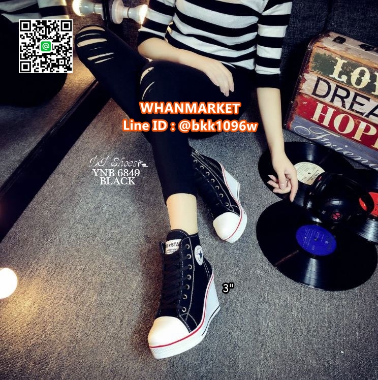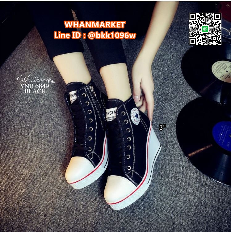 • รองเท้าผ้าใบหุ้มข้อ เสริมส้น 3 นิ้ว วัสดุผ้าแคนวาส ส้นPU มีซิปข้างใส่ง่าย ทรงสวย รีบจับจองกันนะคะสาวๆ
