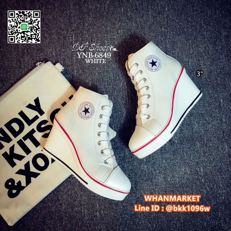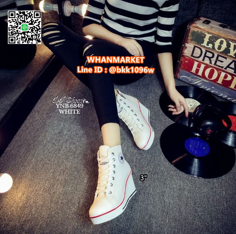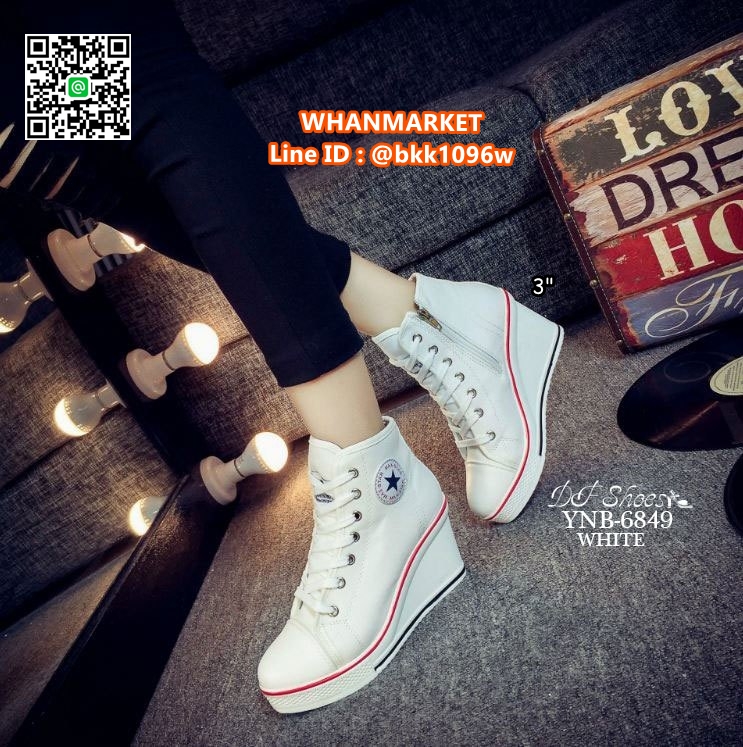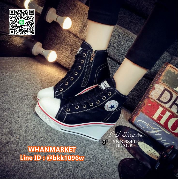 WhanMarketรองเท้าผ้าใบหุ้มข้อ เสริมส้น 3 นิ้ว วัสดุผ้าแคนวาส ส้นPU มีซิปข้างใส่ง่าย ทรงสวย รีบจับจองกันนะคะสาวๆ
