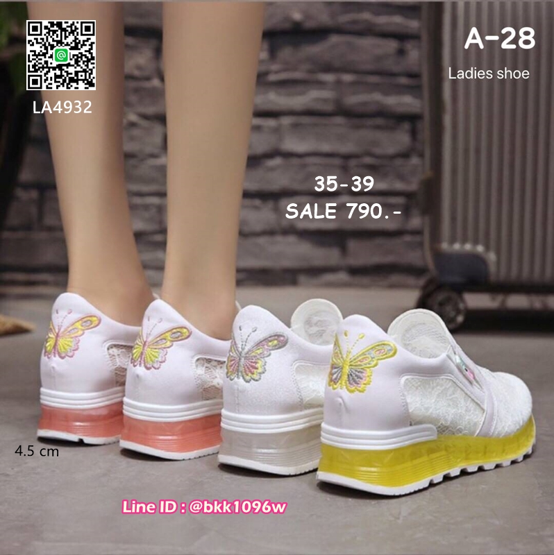 WhanMarketรองเท้าผ้าใบแฟชั่น วัสดุผ้าลูกไม้ แต่งด้วยหนัง PU คุณภาพ พื้นpuน้ำหนักเบา เสริมส้น สูง4.5cm ทรงสวม ใส่ง่าย เพิ่มดีเทลพื้นใส ปักผีเสื้อด้านหลัง งานใส่ได้ตลอด ไม่ตกเทรนด์ รีบสั่งกันเลยจ้า