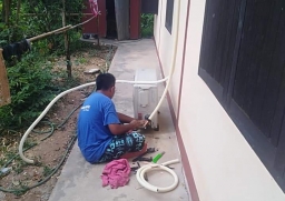 ใช้ปั้มน้ำแรงดันสูงฉีดอัดล้างท่อน้ำทิ้ง และชิ้นส่วนต่างๆ อย่างละเอียด