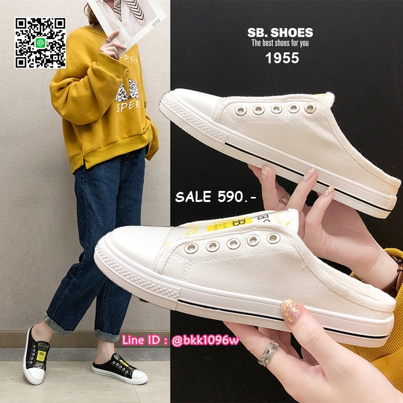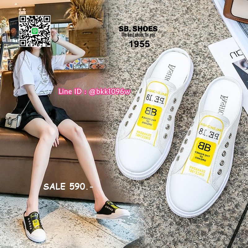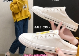 WhanMarketรองเท้าผ้าใบเปิดส้นสุดชิค พิมพ์ลายหน้ารัก ไร้เชือก สวมใส่ง่าย พื้นนิ่ม น้ำหนักเบา ใส่สบาย แมทซ์กับชุดได้ง่าย ไอเท็มที่ไม่ควรพลาดค่ะ