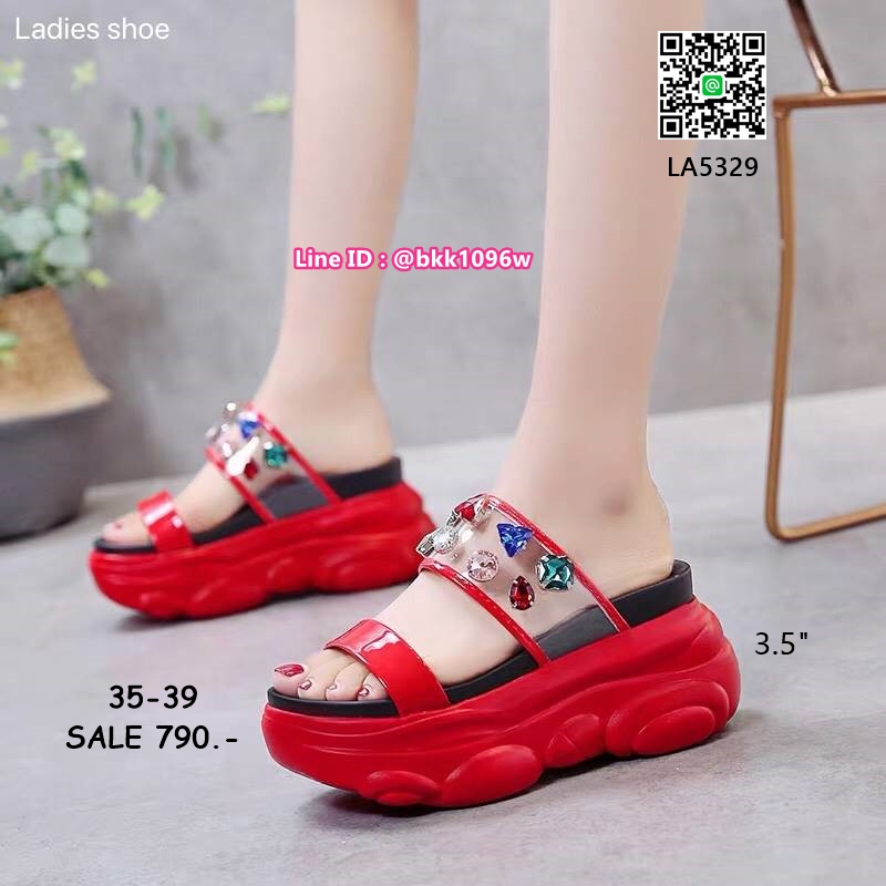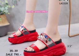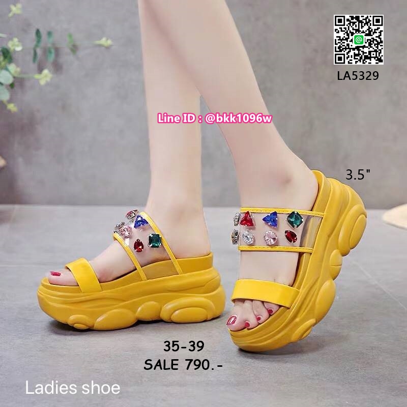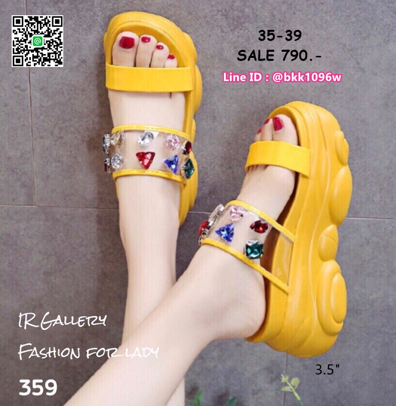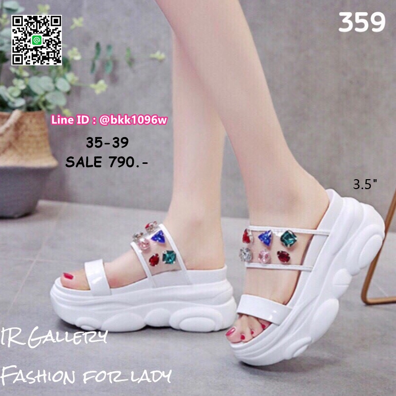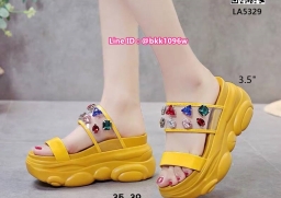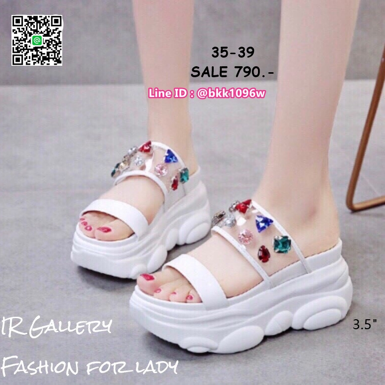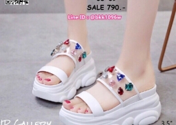 WhanMarketรองเท้าส้นเตารีด แบบสวม สูง 3.5 นิ้ว คาดหน้า 2 ตอน พลาสติกใสเย็บอะไหล่เพชรหลากสี เก๋ไก๋สไลเดอร์ พื้นนุ่ม สูง 3.5 นิ้ว น้ำหนักเบา งานสไตล์เกาหลี น่ารักเว่อร์ รีบสั่งด่วนเลยคร้า