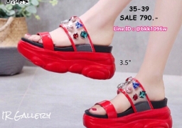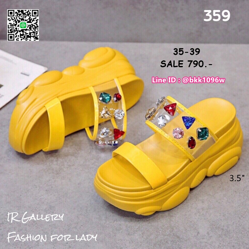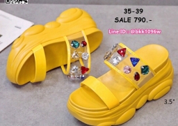 WhanMarketรองเท้าส้นเตารีด แบบสวม สูง 3.5 นิ้ว คาดหน้า 2 ตอน พลาสติกใสเย็บอะไหล่เพชรหลากสี เก๋ไก๋สไลเดอร์ พื้นนุ่ม สูง 3.5 นิ้ว น้ำหนักเบา งานสไตล์เกาหลี น่ารักเว่อร์ รีบสั่งด่วนเลยคร้า
