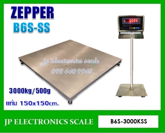 เครื่องชั่งวางพื้นสแตนเลสขนาดใหญ่3000kg เครื่องชั่งกันน้ำดิจิตอล3000kg เครื่องชั่งวางพื้นสแตนเลส3000kg ตาชั่งกันน้ำ3000กิโลกรัม เครื่องชั่งสแตนเลส3000kg ค่าละเอียด 500g ยี่ห้อ ZEPPER รุ่น B6S-3000KSS ขนาดแท่นชั่ง 150x150cm.