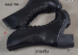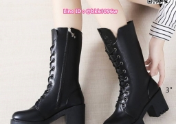 WhanMarketรองเท้าบูทส้นแท่ง สูง 3 นิ้ว หุ้มข้อสูง งานนำเข้า วัสดุหนังpu สีดำด้าน หนังนิ่มมาก ด้านในบุขนสั้น มีซิปข้าง สวมถอดสะดวก มีเชือกผูกปรับได้ เสริมหน้า 1 นิ้ว ส้นสูง 3 นิ้ว งานสวยเท่เก๋ดูมีสไตล์ จัดไปด่วนๆได้เลยจร้า