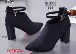 WhanMarketรองเท้าบูท ส้นสูง 2.5นิ้ว หัวแหลม หนังกำมะหยี่อย่างดี ซิปหลังใส่ง่าย ทรงสวยสุดๆ พื้นด้านในนิ่ม น้ำหนักเบา ใส่สบาย งานนำเข้าสไตล์เกาหลี ดีไซน์เรียบๆ แต่ได้ความหรูดูแพง แมทซ์ได้กับทุกสไตล์ ไอเท็มทีไม่ควรพลาดค่ะ