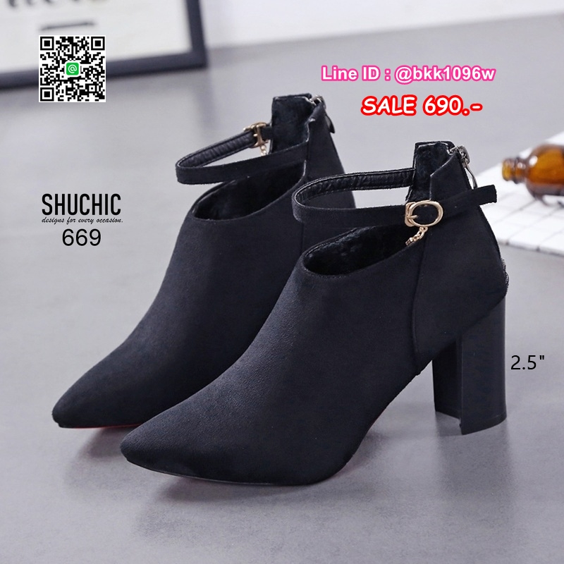 WhanMarketรองเท้าบูท ส้นสูง 2.5นิ้ว หัวแหลม หนังกำมะหยี่อย่างดี ซิปหลังใส่ง่าย ทรงสวยสุดๆ พื้นด้านในนิ่ม น้ำหนักเบา ใส่สบาย งานนำเข้าสไตล์เกาหลี ดีไซน์เรียบๆ แต่ได้ความหรูดูแพง แมทซ์ได้กับทุกสไตล์ ไอเท็มทีไม่ควรพลาดค่ะ