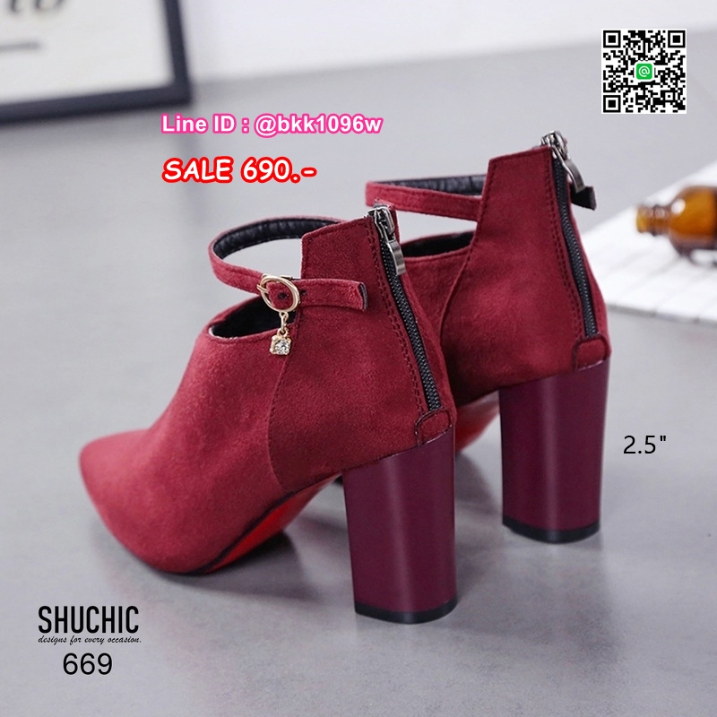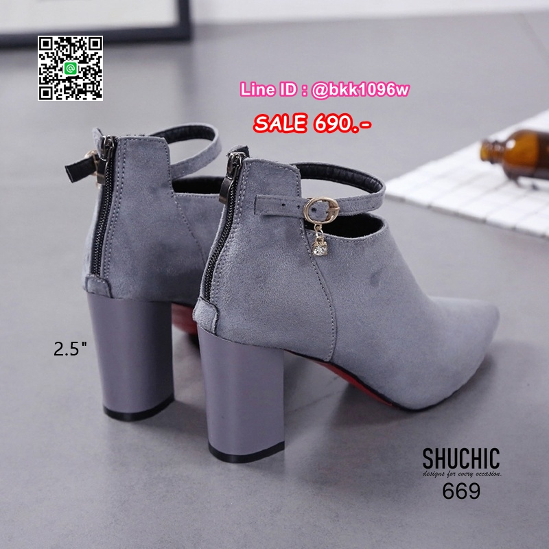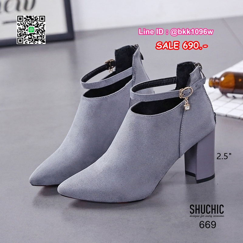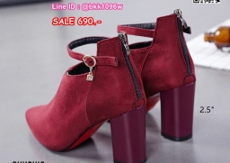 รองเท้าบูท ส้นสูง 2.5นิ้ว หัวแหลม หนังกำมะหยี่อย่างดี ซิปหลังใส่ง่าย