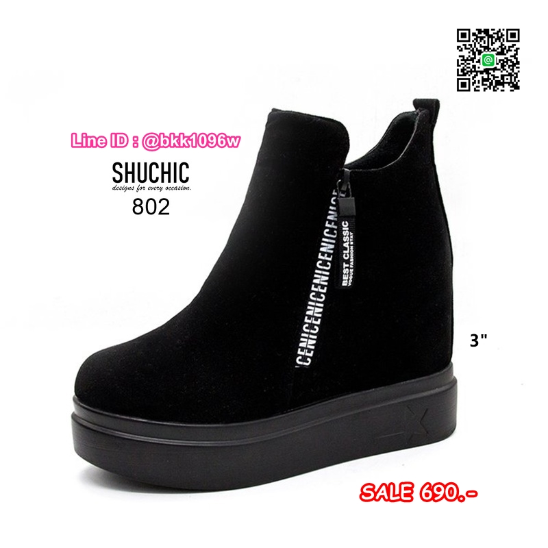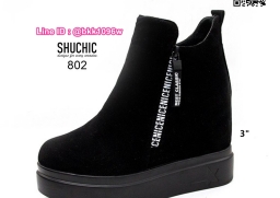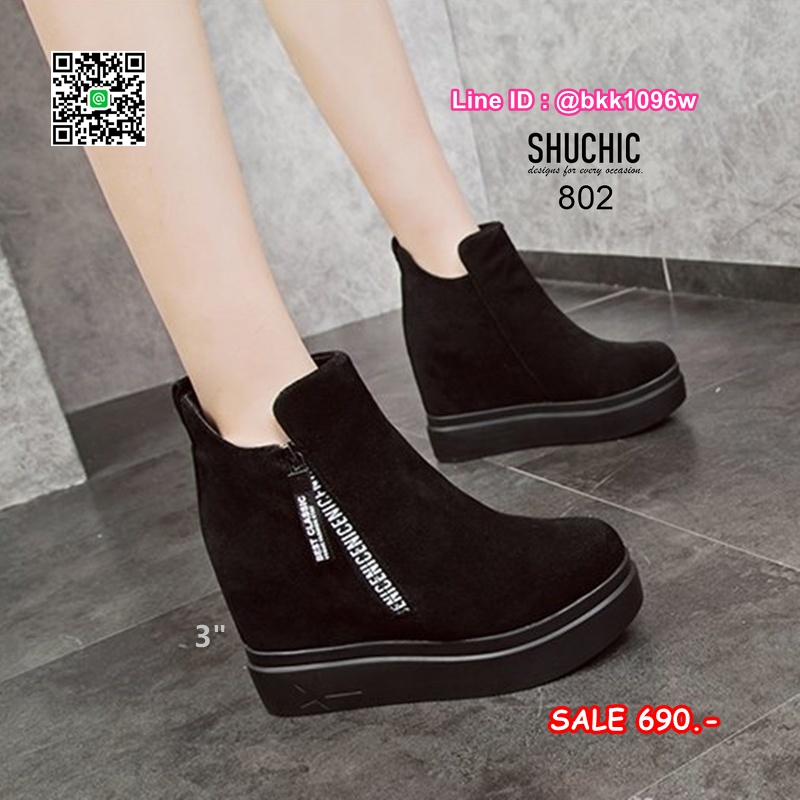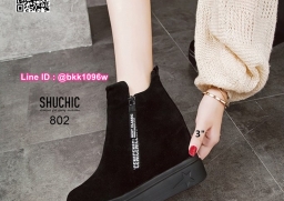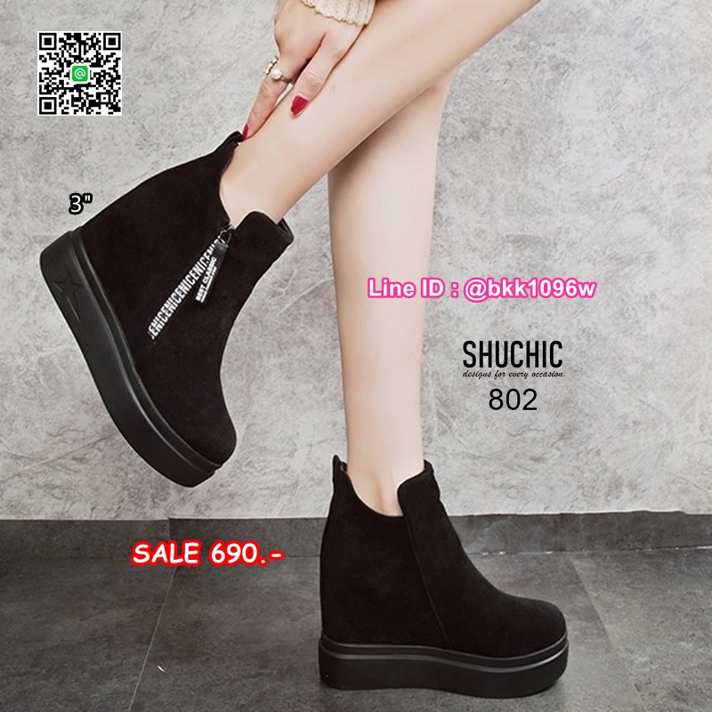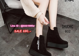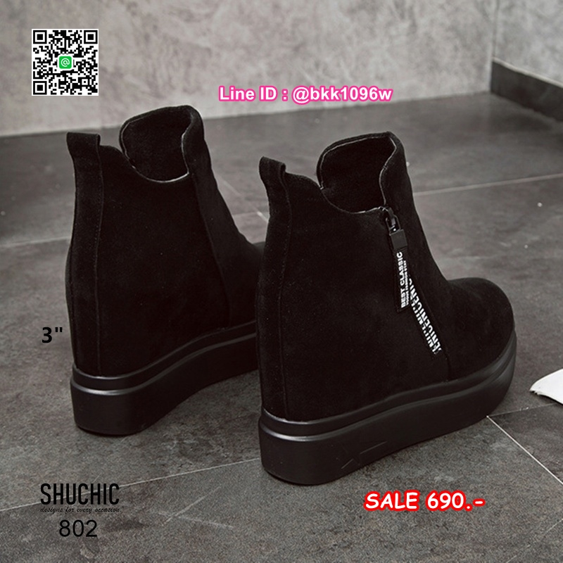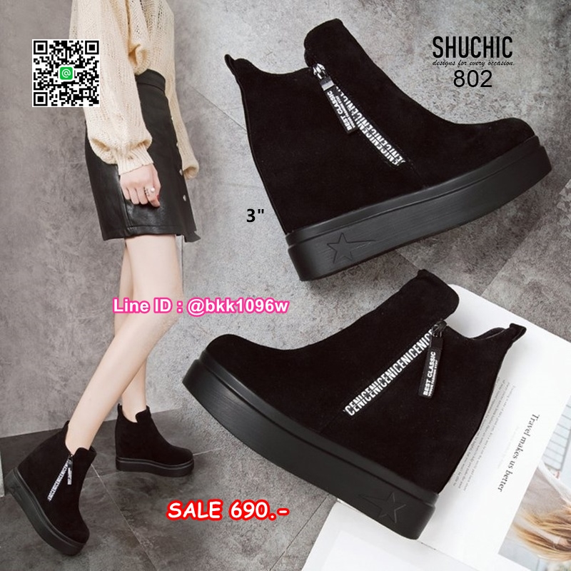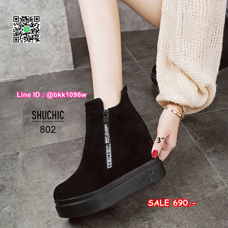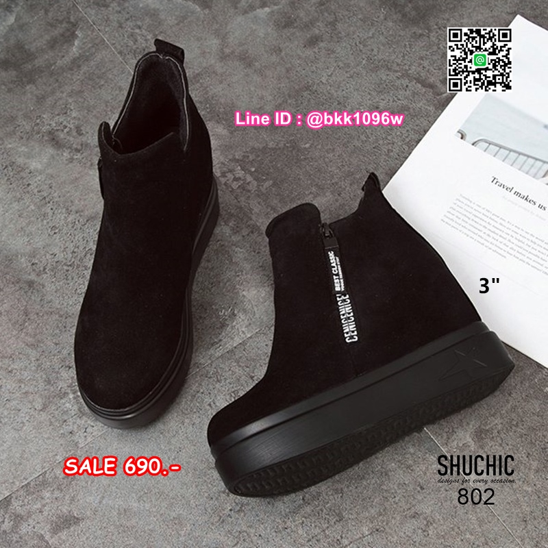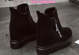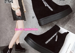 WhanMarketรองเท้าบูทส้นสูง 3 นิ้ว วัสดุหนังกลับนิ่มอย่างดี สีดำ ใส่ง่ายด้วยซิปด้านข้าง หัวซิปมีห้อยอะไหล่ดีเทลสวยมากเวอร์ พื้นด้านในนิ่ม น้ำหนักเบา ใส่สบาย งานสวยมาก ส้นสูง 1 นิ้ว เสริมใน 2นิ้ว (รวมสูง 3นิ้ว) ใส่แล้วดูขาเรียว งานนำเข้าสไตล์เกาหลี แมทซ์กับชุดได้ง่าย ไอเท็มที่ไม่ควรพลาดค่ะ