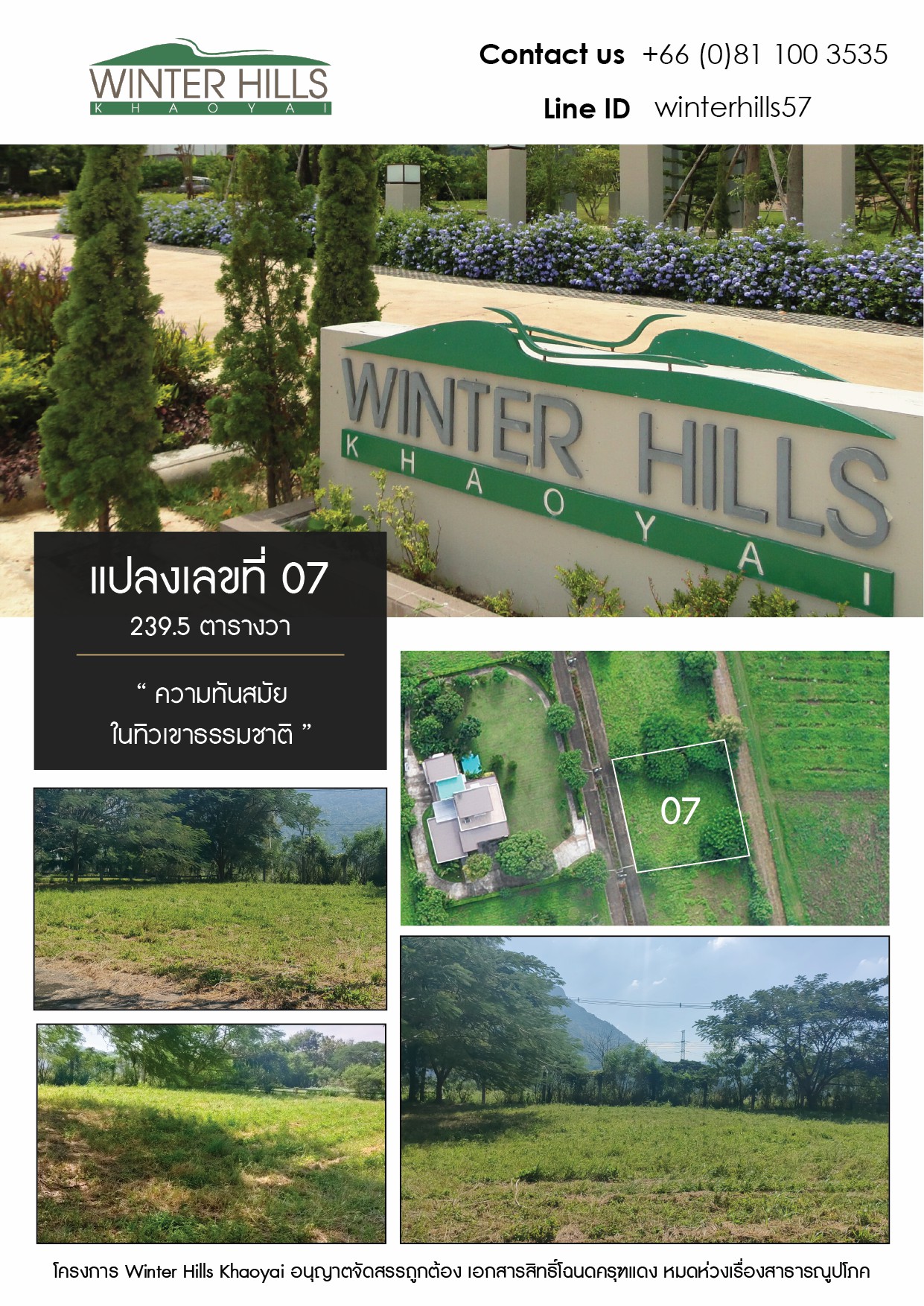 อาร์ตออฟลิฟวิ่ง พร็อพเพอร์ตี้ขายที่ดินจัดสรร โครงการ Winter Hills เขาใหญ่ แปลงเลขที่ 07