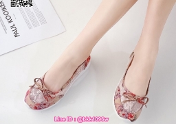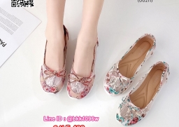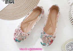 รองเท้าคัชชู วัสดุผ้าลายเกร๋ๆ แต่งโบว์ด้านหน้า พื้นบุนวม ใส่นิ่มนุ่มสบายสุดๆ