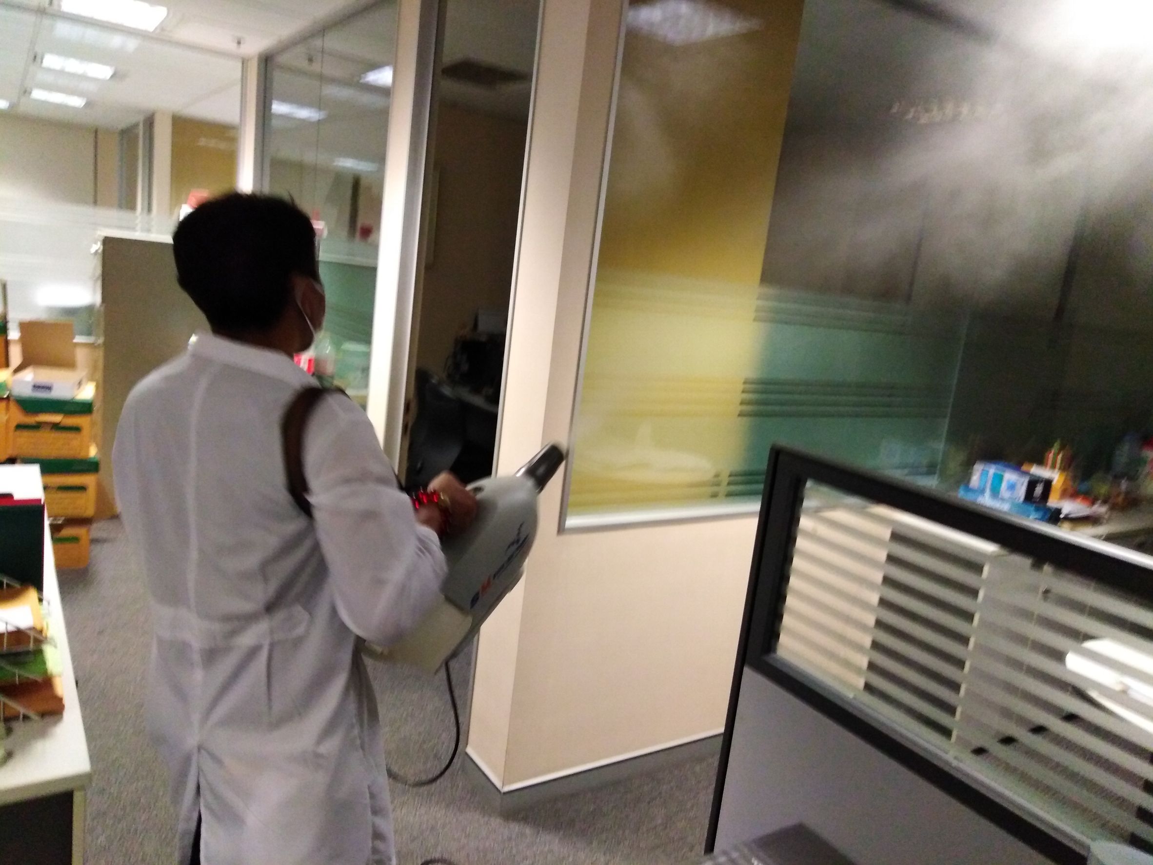 หยุดการแพร่ติดต่อทางหายใจ ด้วยวิธีการฉีดพ่นด้วยเครื่องพ่นฝอยละอองละเอียดหรือเครื่องพ่นหมอกควันในปริมาณ 3-10 ลิตรต่อ 1000 ลูกบาศก์เมตรอากาศและปิดห้องไว้เป็นระยะเวลา 2-3 ชั่วโมง สามารถขจัดเชื้อโรคและกลิ่นเหม็นอับเป็นการปรับสภาพอากาศภายในห้องอาคาร และห้องต่าง ๆ สามารถป้องกันการแพร่เชื้อไวรัสไข้หวัดทุกสายพันธุ์