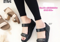 WhanMarketรองเท้าพื้นสุขภาพ แบบสวมคาด 2 ระดับ แต่งอะไหล่โซ่คาดหน้า หนังนิ่มมาก ด้านในซับหนังนิ่มๆนุ่มเท้า ใส่แล้วรับฝ่าเท้า ส้นสูง 2.5 นิ้ว น้ำหนักเบามาก ใส่สบายเท้า แถมดีไซน์สวยแบบนี้พลาดไม่ได้แร้ว