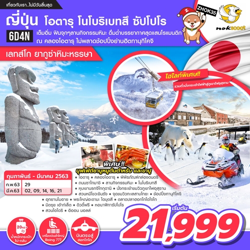 เต็มอิ่ม ฟินจุกๆลานกิจกรรมหิมะ ดื่มด่ำบรรยากาศสุดแสนโรแมนติก ณ คลองโอตารุ ไม่พลาดช้อปปิ้งย่านฮิตทานุกิโคจิ พิเศษ บุฟเฟ่ต์ชาบูหมูต้นตำหรับ และขาปู