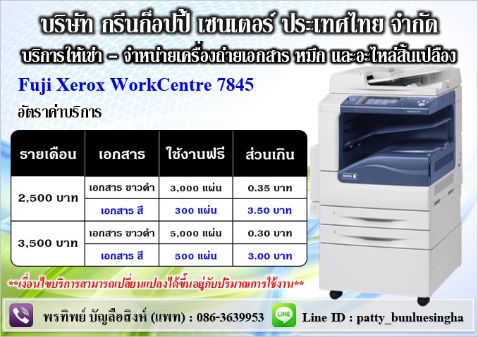 บริการให้เช่า และจำหน่ายเครื่องถ่ายเอกสารสี และขาวดำ Fuji Xerox 7845 ราคาพิเศษค่ะ โทร : 0863639953 แพท