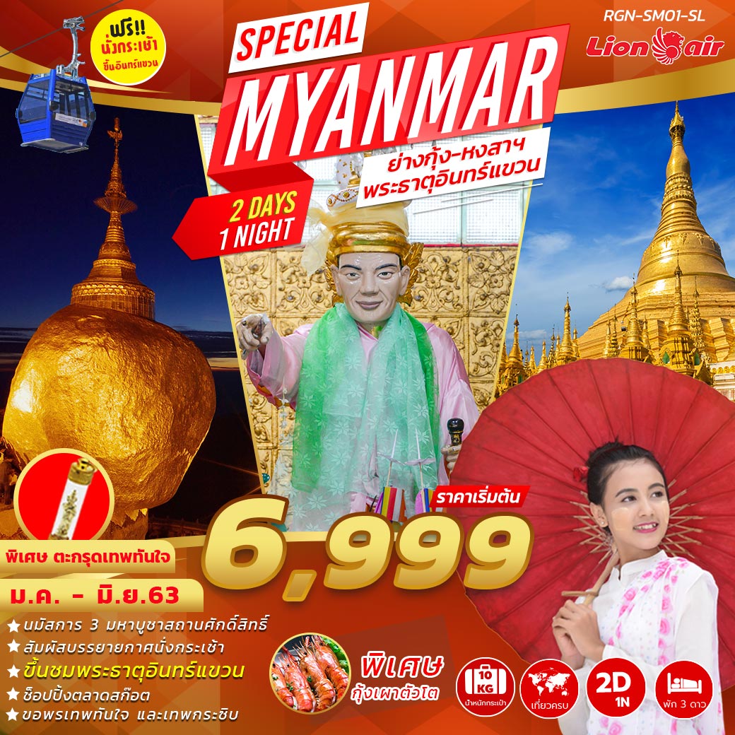 มาลินี พ้นภัยพาลสายการบิน THAI LION AIR เดินทาง ม.ค.- มิ.ย.63 ราคาเริ่ม 6,999 บาท พระมหาเจดีย์ชเวดากอง หงสาวดี พระธาตุอินแขวน พระนอนชเวตาเลียว ย่างกุ้ง เจดีย์โบตาทาวน์
