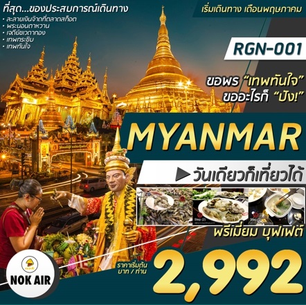มาลินี พ้นภัยพาลสายการบิน Nok Air เดินทาง พ.ค.63 ราคาเริ่ม 2,992 บาท ไหว้พระพม่าย่างกุ้ง 1 วัน ขอพร นัตโบโบยี เทพทันใจและเทพกระซิบ 1 ใน 5 มหาบูชาสถานอันศักดิ์สิทธ์ เจดีย์ชเวดากอง คู่บ้านคู่เมืองชาวพม่า ชมพระนอนตาหวาน แวะช้อปปิ้งของพื้นเมืองที่ตลาดสก็อต