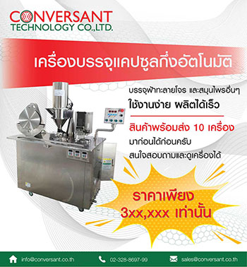 เครื่องบรรจุแคปซูลแบบกึ่งอัตโนมัติ ตัวเครื่องทำด้วยสแตนเลสสตีล ชุดบรรจุแคปซูลทำจากสแตนเลสทุกชิ้น ได้ตาม GMP Standard เหมาะกับการบรรจุยาสมุนไพรทุกชนิด เช่น ขมิ้นชัน เขากวางอ่อน ยาหอม ยาสตรี บอระเพ็ด รางจืด ที่ผ่านการอบไล่ความชื้นและบดละเอียดแล้ว ช่วยในการเพิ่มกำลังการผลิตแคปซูลมากกว่าเครื่องแบบบรรจุด้วยมืองานได้หลายเท่าตัว น้ำหนักคงที่ (สามารถปรับน้ำหนักได้) ใช้งานง่าย ดูแลรักษาและทำความสะอาดง่าย เครื่องใช้งานได้ทนทาน