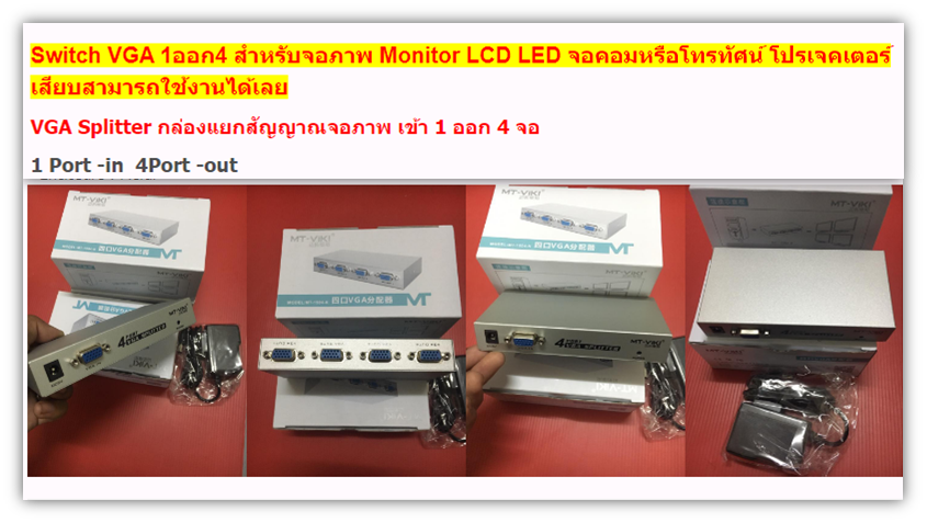 somjai srisukกล่องแยกสัญญาณจอภาพ VGA SPLITTER เข้า 1 ออก 4 จอ
