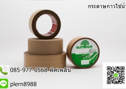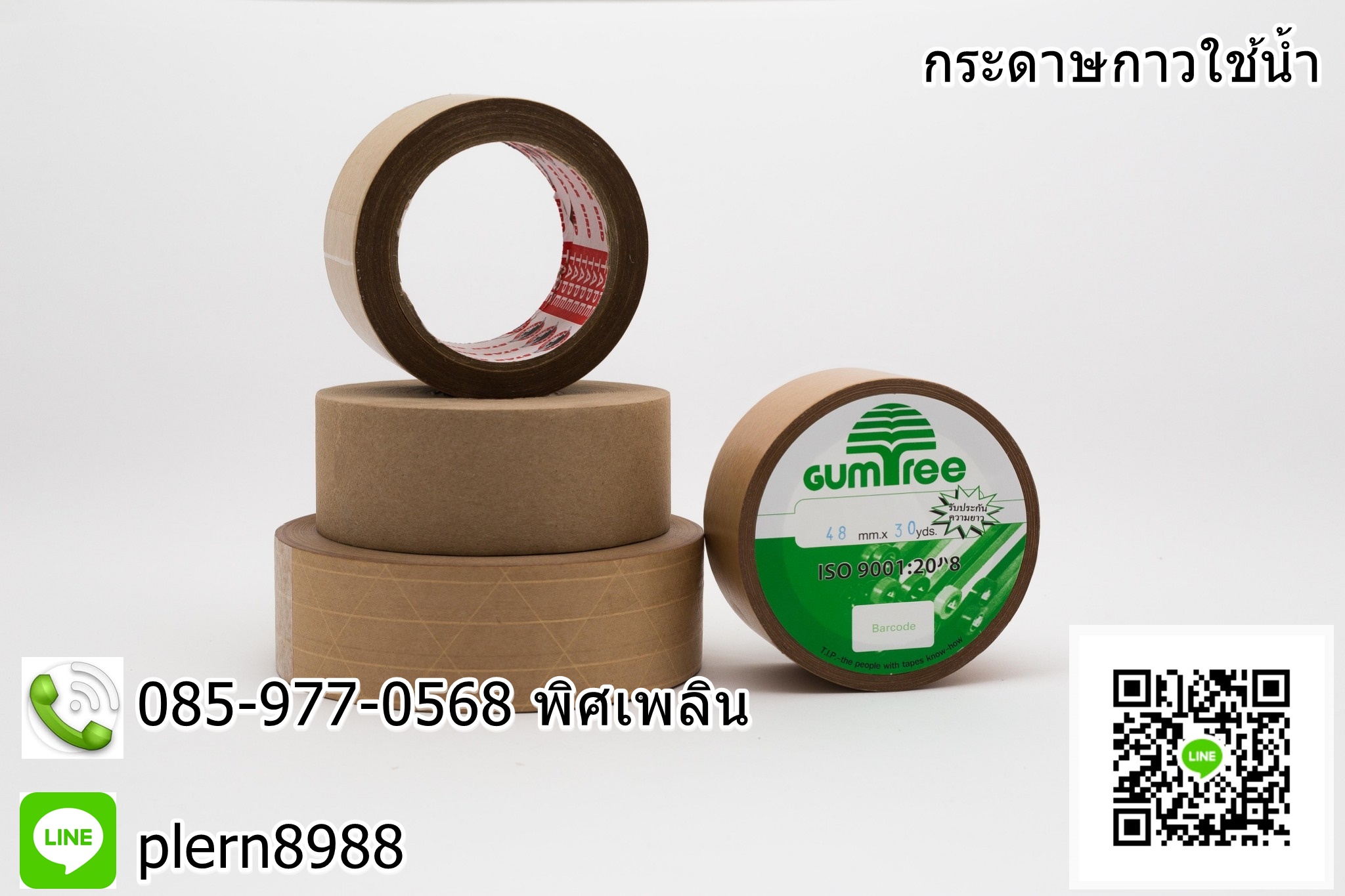 กระดาษกาวใช้น้ำ ( Gummed Tape) มีหลายหน้ากว้างให้เลือก 24 , 36, 48, 60 และ 72 มม. กระดาษกาวใช้น้ำแบบมีไฟเบอร์กลาส (Reinforced Gummed Tape) ใช้ปิดกล่องที่ต้องรับน้ำหนักสูงได้
