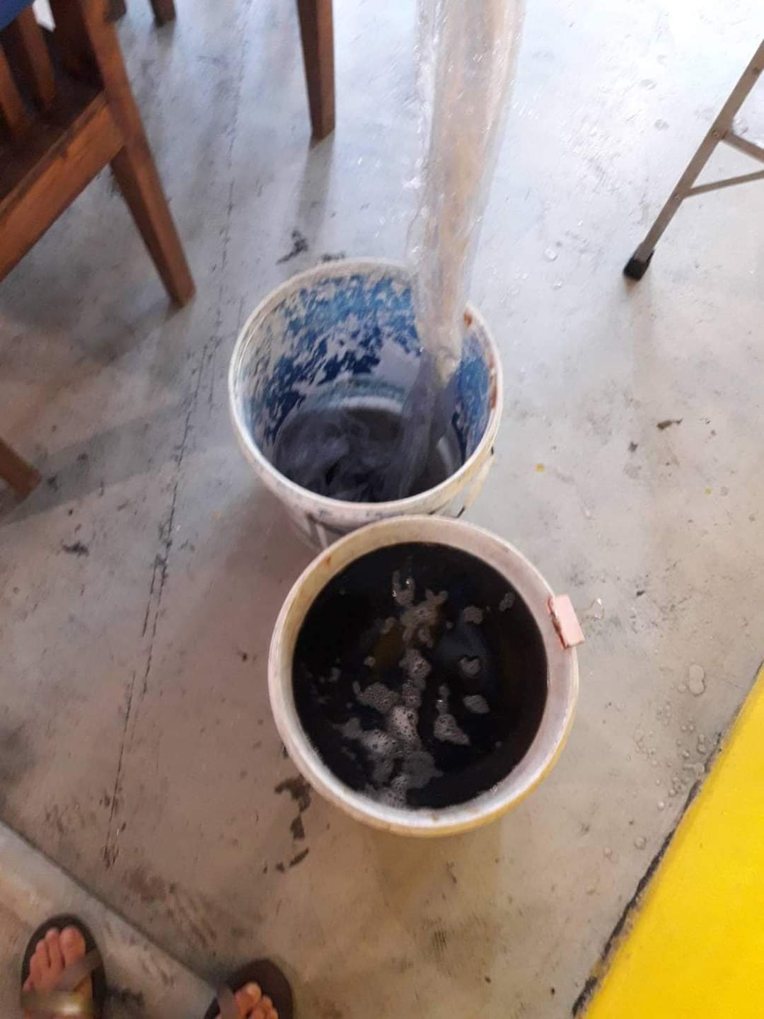 ใช้ปั้มน้ำแรงดันสูงฉีดอัดล้างท่อน้ำทิ้ง และชิ้นส่วนต่างๆ อย่างละเอียด