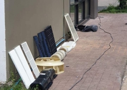 ใช้ปั้มน้ำแรงดันสูงฉีดอัดล้างท่อน้ำทิ้ง และชิ้นส่วนต่างๆ อย่างละเอียด